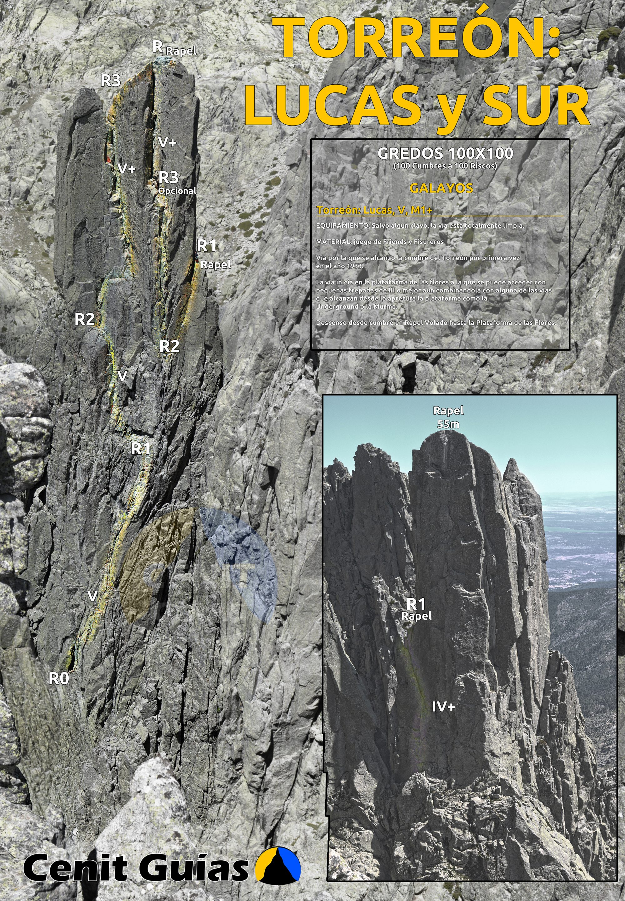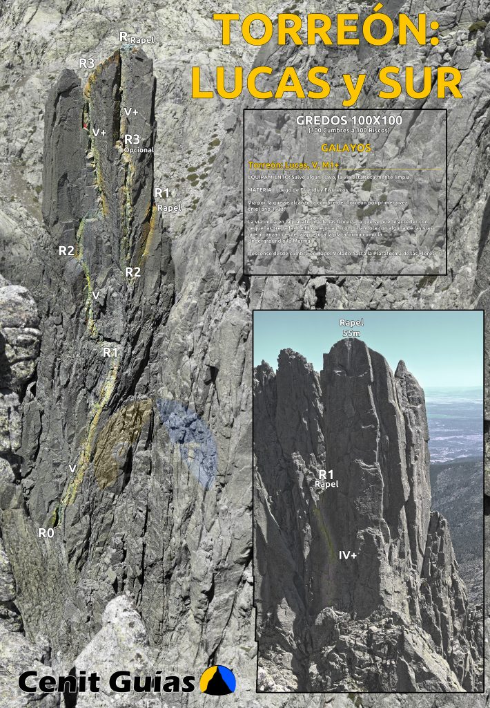 Vía variada de placa fisura que en tres largos nos deja casi en lo alto del risco y en la que podemos hacer diferentes combinaciones en los primeros largos.