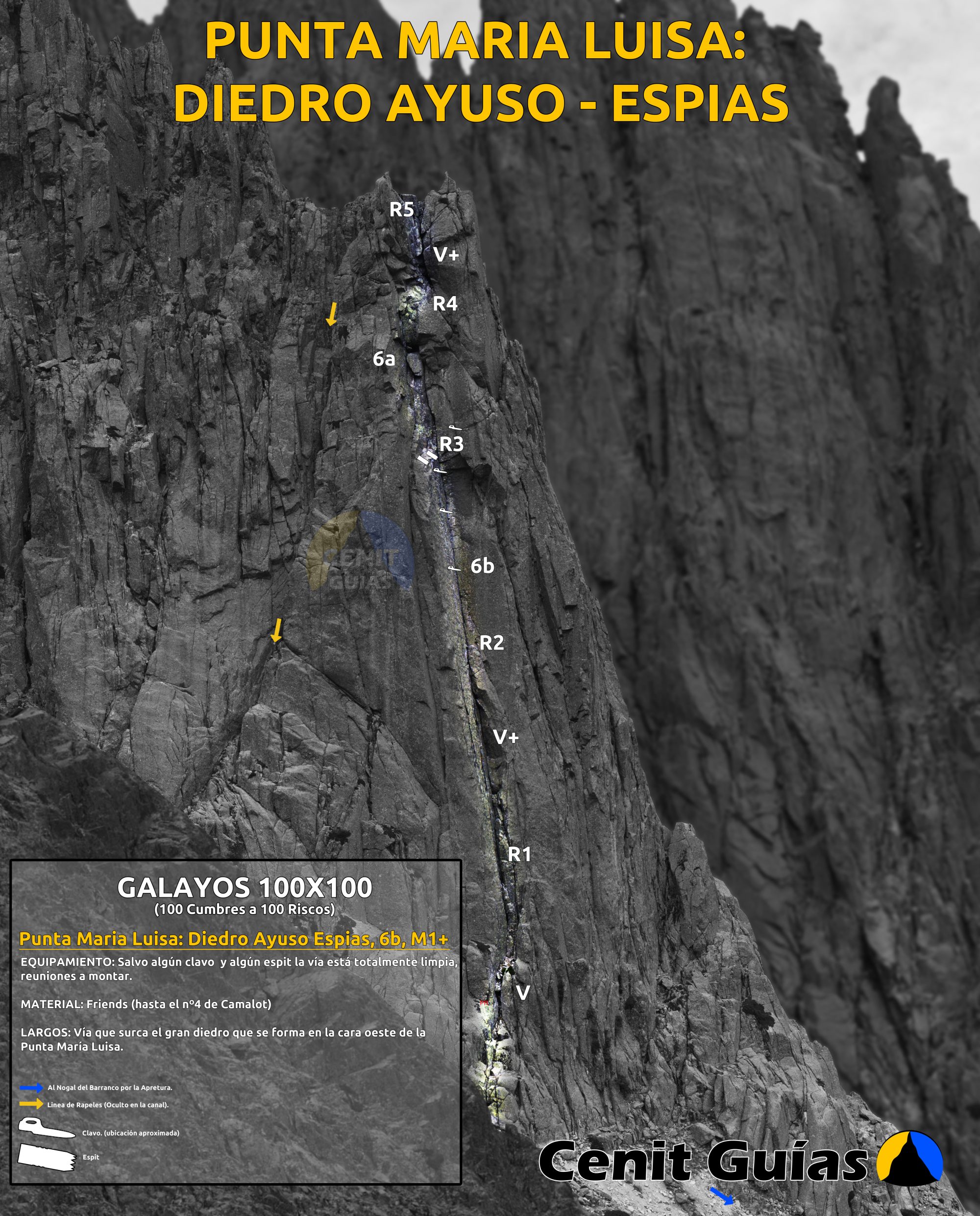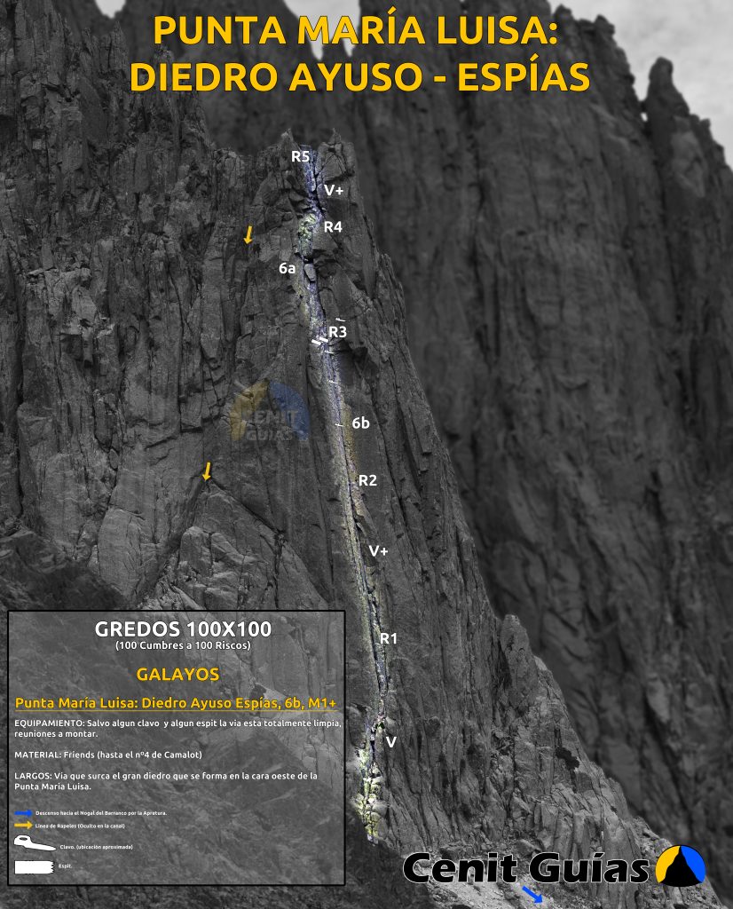 Vía que surca el gran diedro que se forma en la cara oeste de la Punta María Luisa.