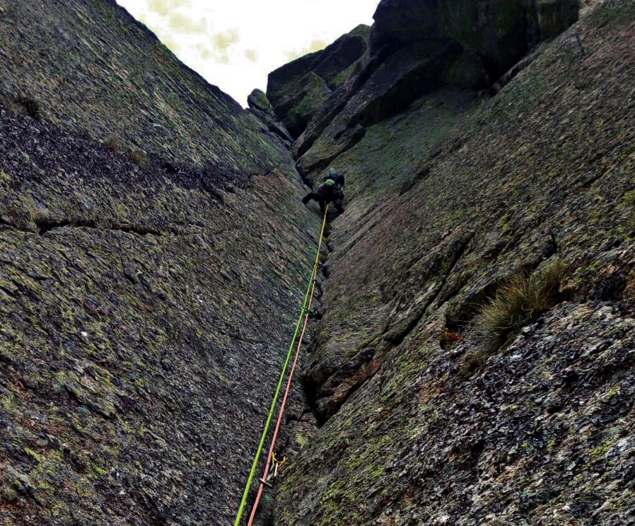 L4 6a: Largo mas discontinuo con buenos reposos el paso más duro será superar una gran piedra que nos cortara el paso (el nº4 de Camalot puede ser útil para proteger este paso).